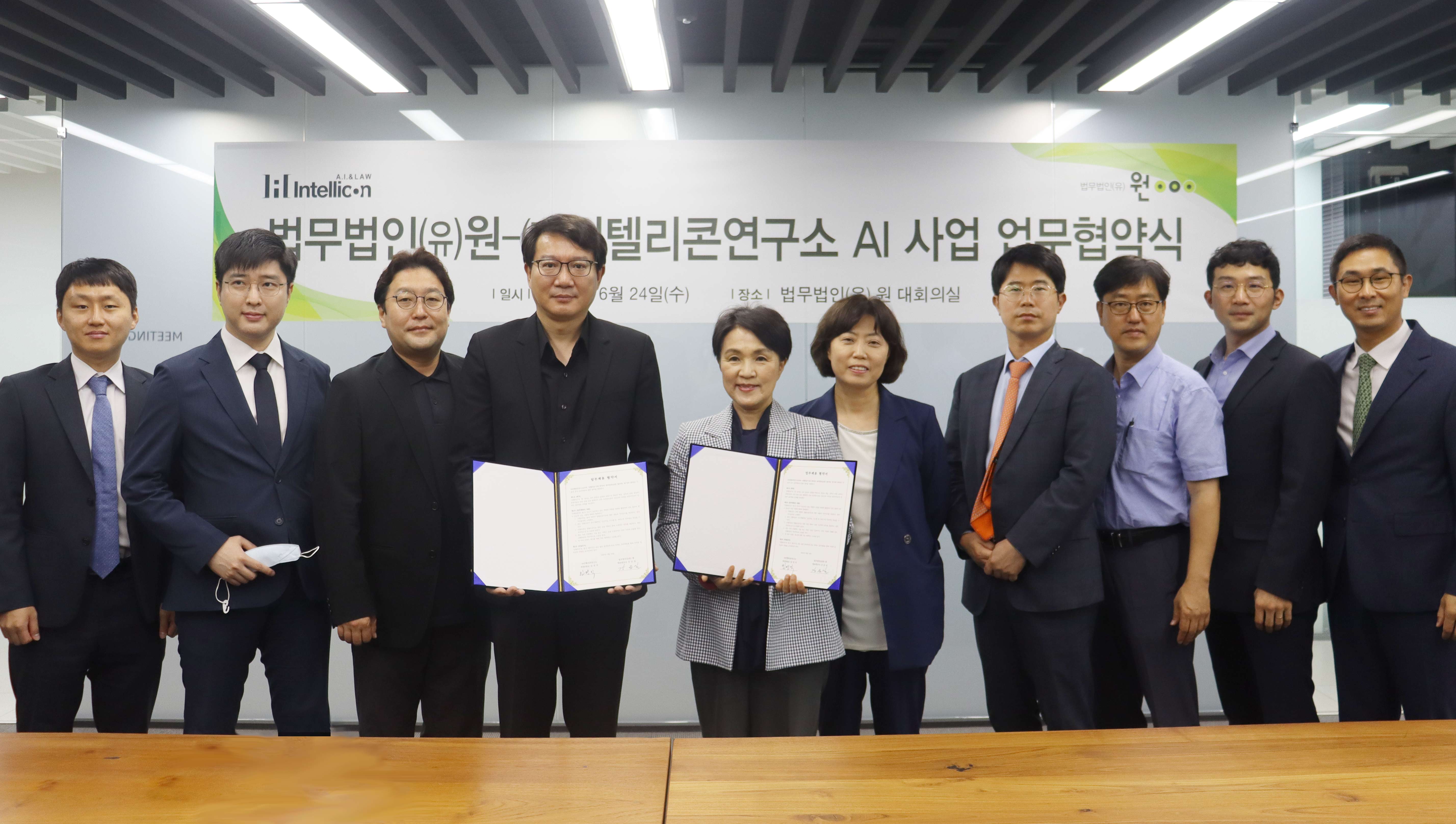법무법인(유) 원(대표변호사 강금실, 윤기원)이 법률 인공지능(AI) 전문기업 인텔리콘연구소(대표 임영익)와 지난 24일 법무법인(유) 원 대회의실에서 AI사업 지원을 위한 업무협약을 체결했다.